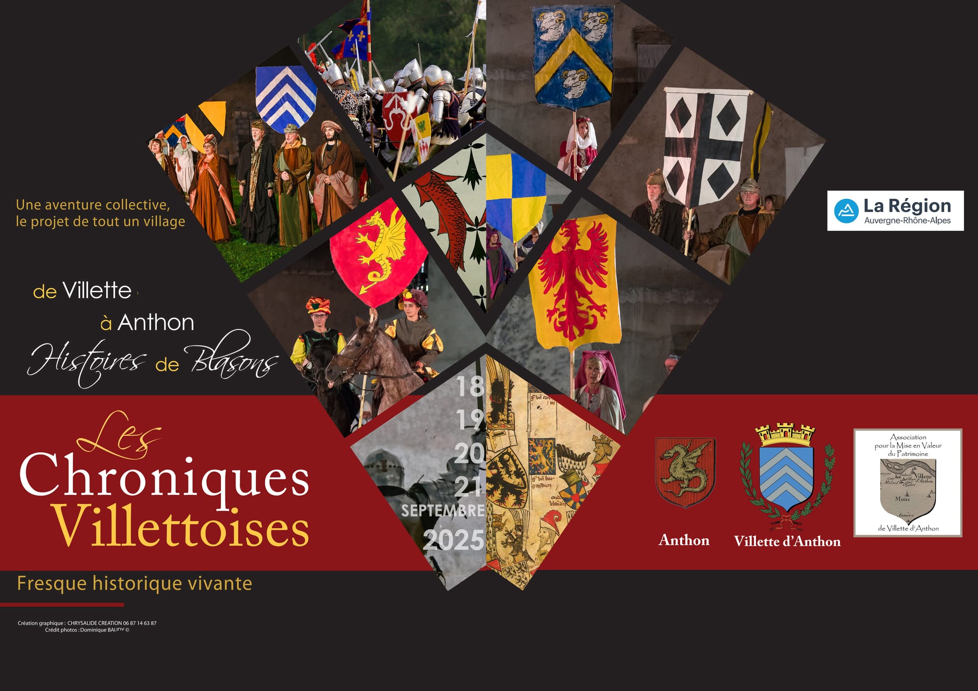"De Villette à Anthon, histoires de blasons"Bien évidemment ces Chroniques n’existent qu’avec les soutiens de la Commune de Villette d’Anthon et son Maire, Bruno Gindre, de la Région Auvergne Rhône-Alpes, du Département et de nombreux partenaires privés, entreprises et commerçants, particuliers et généreux donateurs, fidèles et nouveaux.